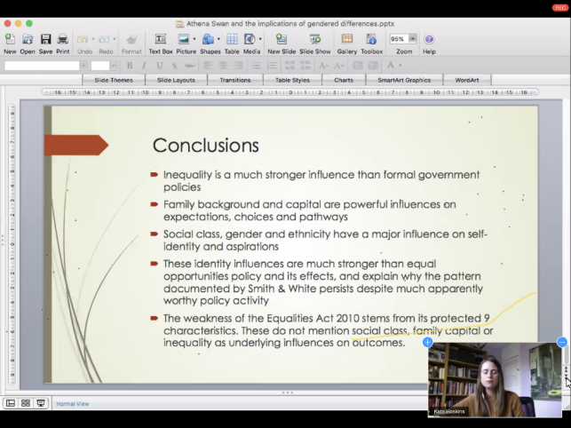 首场讲座由英国布鲁奈尔大学教育学系的Kate Hoskins教授主讲,3200威尼斯教育学系翟俊卿博士主持。Kate Hoskins教授是英国“性别与教育学会”主席,长期致力于教育政策、身份认同和教育公平等问题的研究,她以“Athena Swan and the implications of gendered differences in chemistry”为主题分享了其近期研究成果。Kate Hoskins教授针对化学学科,通过对11名化学专业学生和8名讲师进行半结构化访谈,发现学生的志向和成就间存在着明显的性别差异,其中女性学者遭受了更多的不平等待遇。回归到未来的STEM教育方向,Kate Hoskins教授认为,只有考虑到每一位参与者的阶层、性别和种族等社会文化因素,才能组建一支更具代表性且更具社会公正性的STEM队伍。广大学员与Hoskins教授在本场讲座中围绕相关议题展开激烈的讨论。