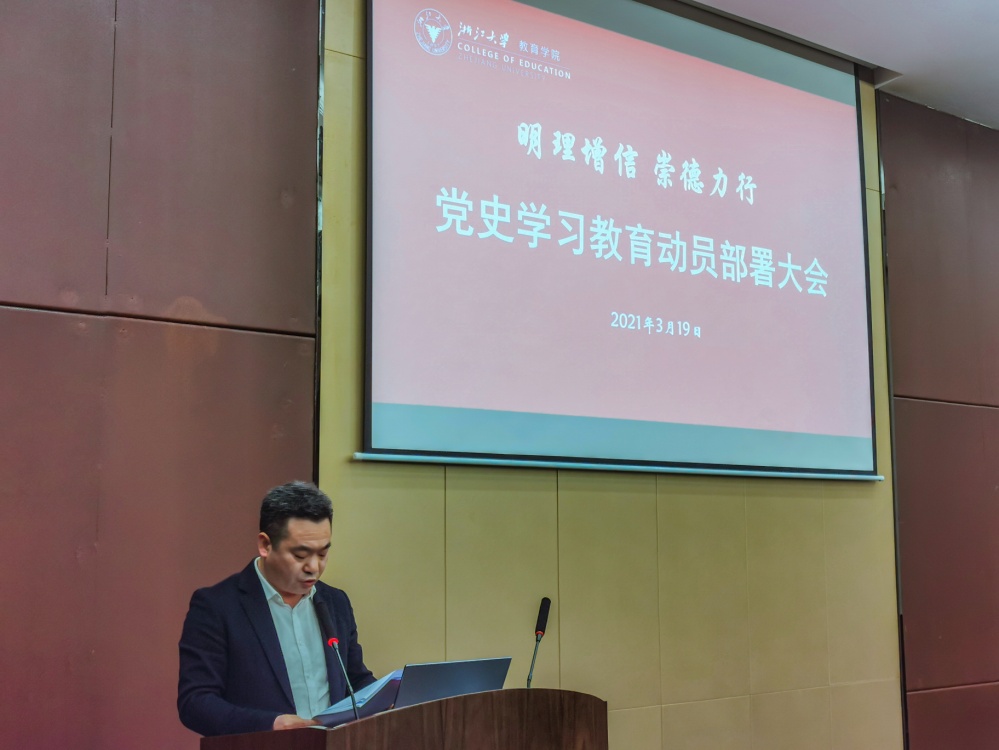 会议要求全体党员要认真学习领会习近平总书记在党史学习教育动员会上的重要讲话精神,认真贯彻落实党中央、教育部党组、浙江省委和学校党委的重大部署,深入开展党史学习教育,在学思践悟中进一步增强“四个意识”、坚定“四个自信”、做到“两个维护”,不断提高政治判断力、政治领悟力、政治执行力,为学院“十四五”起好步开好局提供坚实的政治保障。