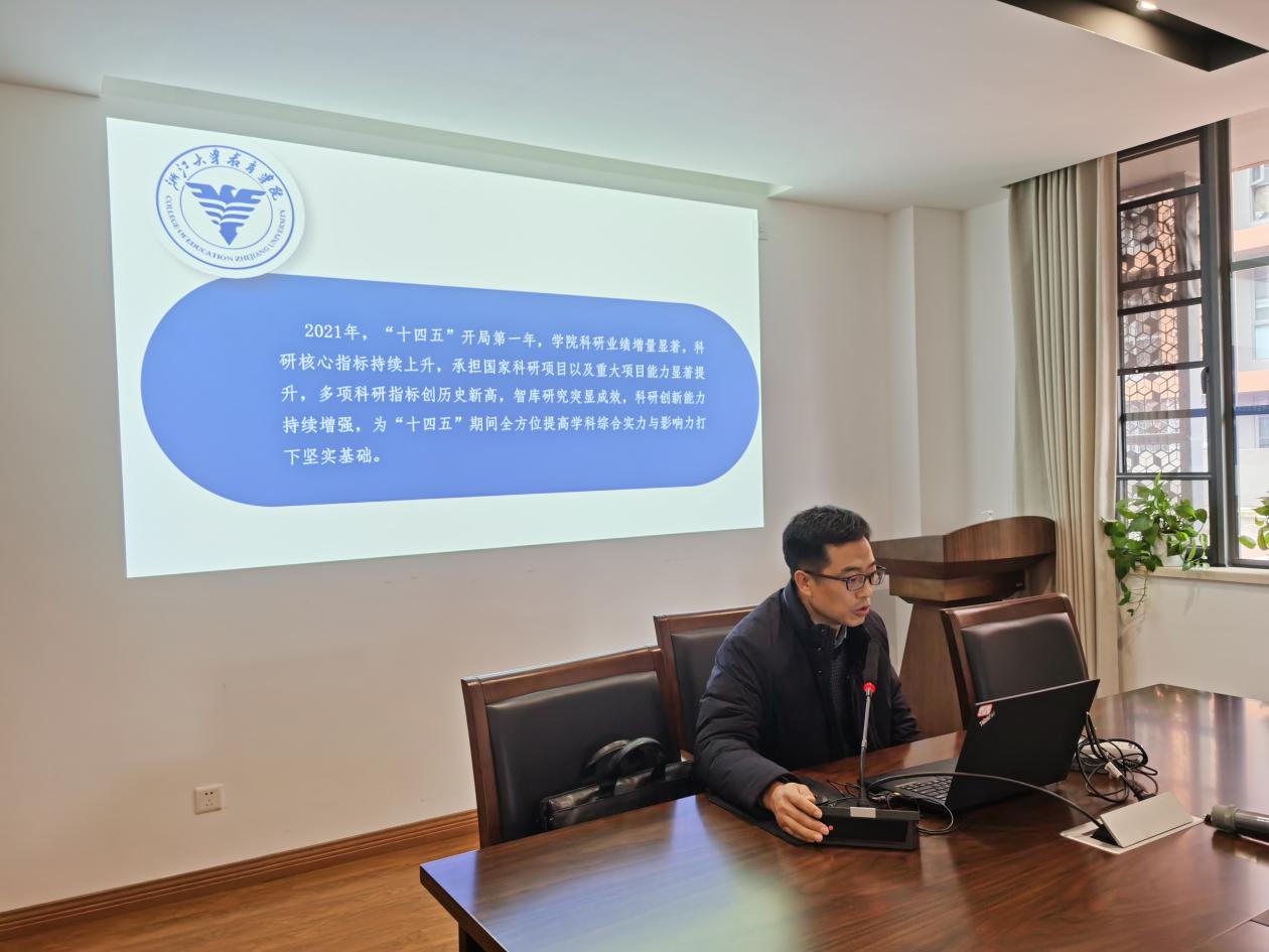 党委书记吴巨慧从机制建设、重点突破、未来可预期成果及努力方向三个方面介绍了学院现阶段科研整体概况。他指出,学院将以围绕服务国家重大战略、服务地方发展、锚定学科交叉新范式三个维度,深入推进有组织的科研,进一步发挥高层次人才的引领带动作用,重点发力,力争“十四五”期间,在重大项目、重要成果奖、权威期刊论文等方面实现新突破。