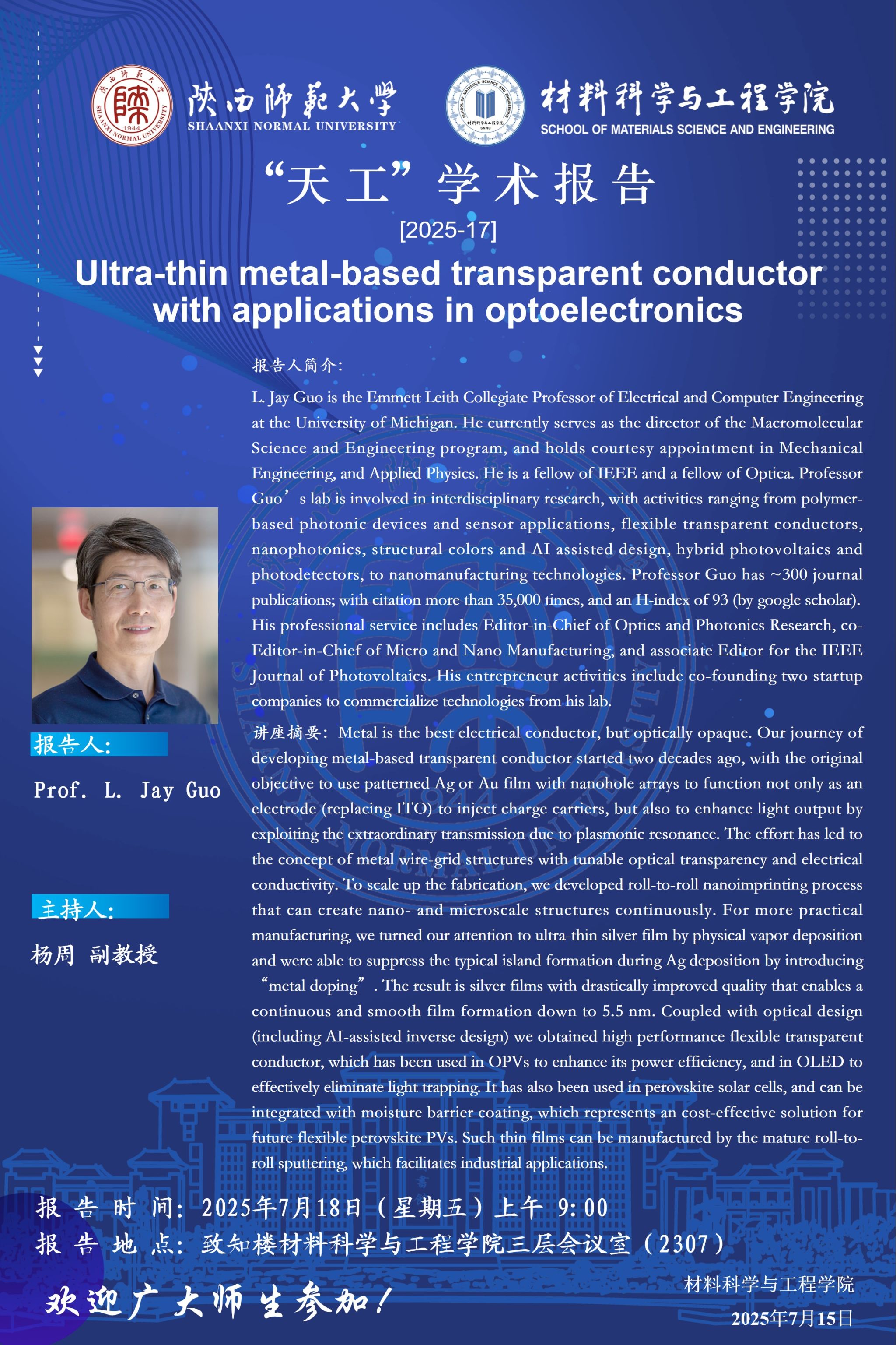 天工学术报告--ULTRA-THIN METAL-BASED TRANSPARENT CONDUCTOR WITH APPLICATIONS IN OPTOELECTRONICS